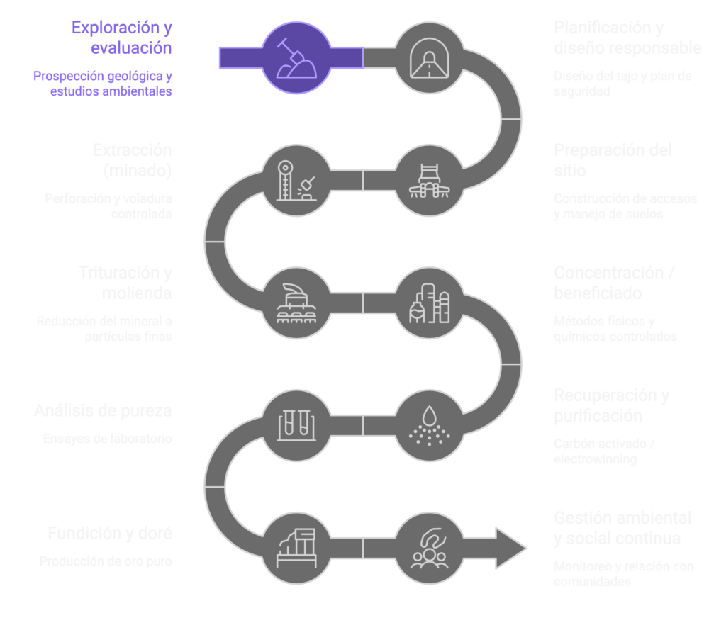 Proceso responsable de extracción de oro a cielo abierto